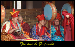 Festivals or Tshechus are important events and celebrated throughout Bhutan. The term “Tshechu” literally translates into 10th day of the Bhutanese Lunar calendar which is considered auspicious. During Tshechus, Chaams (religious dance) are performed either by monk or by lay people. Besides the religious dancers and singers, there are atsaras ( Clowns) who usually wear masks with big red noses. To most, Atsaras are the soul of Tshechu or festival. They joke and yet they are the ones who maintain order. People also believe that they are religious teachers.